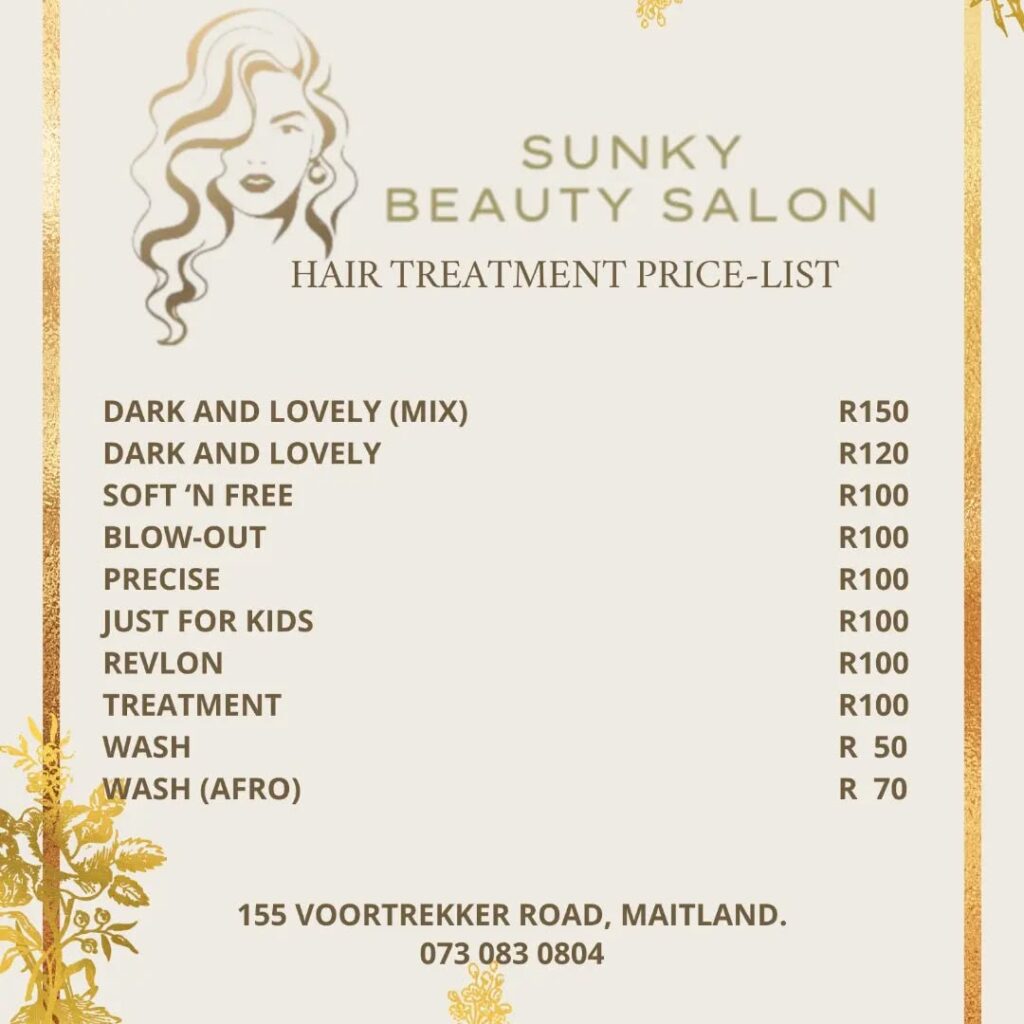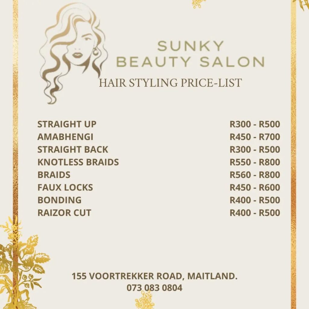 Locations more than 10km from Our Salon will be charged R100 Call out fee.
